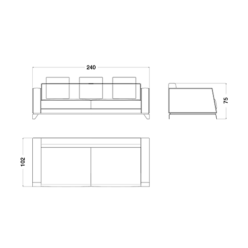 W 240 × D 102 × H 75